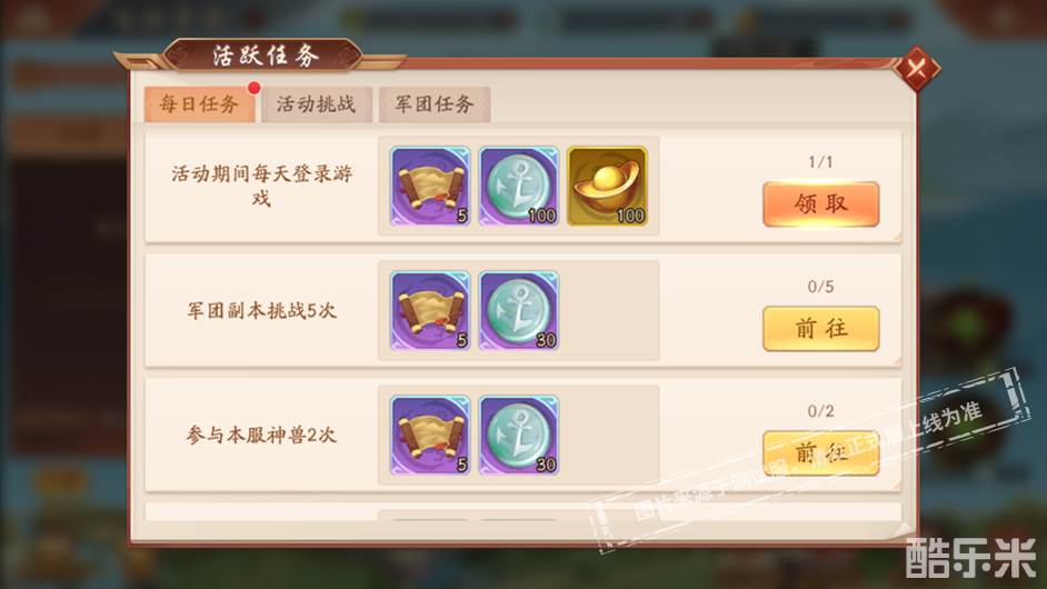 活动期间,少年们每日完成军团副本、神兽挑战、兵临城下、定军山、书楼争魁、巅峰竞技场、红颜出游等活跃任务均可获取航海图和银石锚币奖励;累计完成活动挑战和军团任务可获取司南、航海图、金玉锚币和银石锚币奖励。