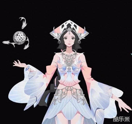 西施的乘鲤瑶,选题来源于壮族的刘三姐,头顶一个大大的壮族帽子,手上有一个壮族绣球,