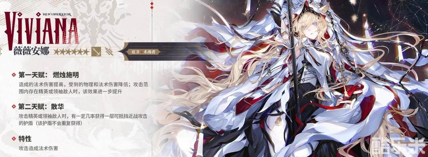 明日方舟薇薇安娜技能天赋怎么样?在明日方舟这款游戏中,薇薇安娜是4.5周年庆(感谢庆典)期间,即将上线的新六星干员角色之一,为非限定干员,角色的定位是近卫-术战者,就是近卫职业下的法术近卫分支,可以看做是有防护的不扣血42姐。因此今天小编就给大家带来了,最新明日方舟薇薇安娜技能天赋一览,供大家进行参考。