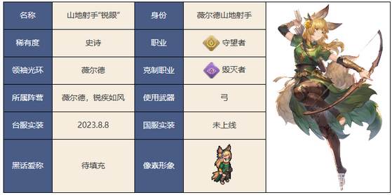 以上就是小编带来的关于铃兰之剑为这和平的世界薇尔德山地射手角色的介绍了,希望能帮助到各位小伙伴。