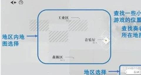 一个是辛弗尼卡,包涵工业区/森林区/音乐厅,其中音乐厅有细分可跳转的小地图:入口处/医务室/训练室/餐厅/礼堂/机关室6个小地图;工业区有细分不可跳转的2个小地图;森林区有不可跳转的4张小地图。注:小地图的分割方式就是看是否会加载黑屏,小地图计数包括进入大地图的初始小地图。