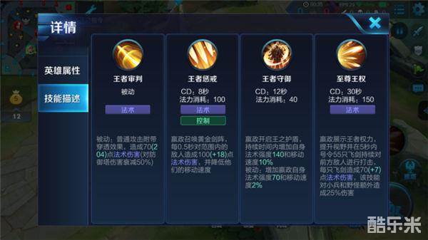嬴政开启王之护盾,提高自身移动速度以及法术强度。被动:嬴政永久性提高自身法术强度以及移动速度。这个技能赋予嬴政不错的支援能力,并且其提供的法术强度使得嬴政的伤害拥有质的飞跃。