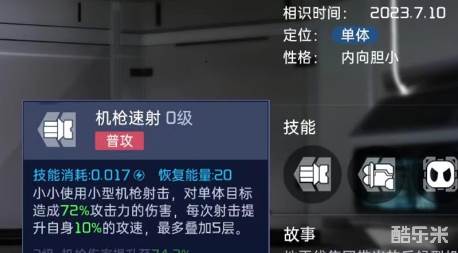 这是由地平线集团推出的斥候型机械宠物,拥有超长待机特性,性格内向胆小而且外观迷你,没有太多进攻性。普攻技能机枪速射,使用小型机枪向目标射击,对单体目标造成伤害以后每次射击命中都能提升自身攻速。达到6级时每一次攻速提升11.5%,最多叠加5层,这样战斗开始之后不久就能将攻速叠加上去,所以攻速方面完全不用担心。