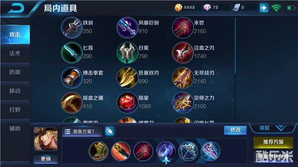 六神装:影忍之足、追击刀锋、末世、纯净苍穹、破甲弓、冰痕之握