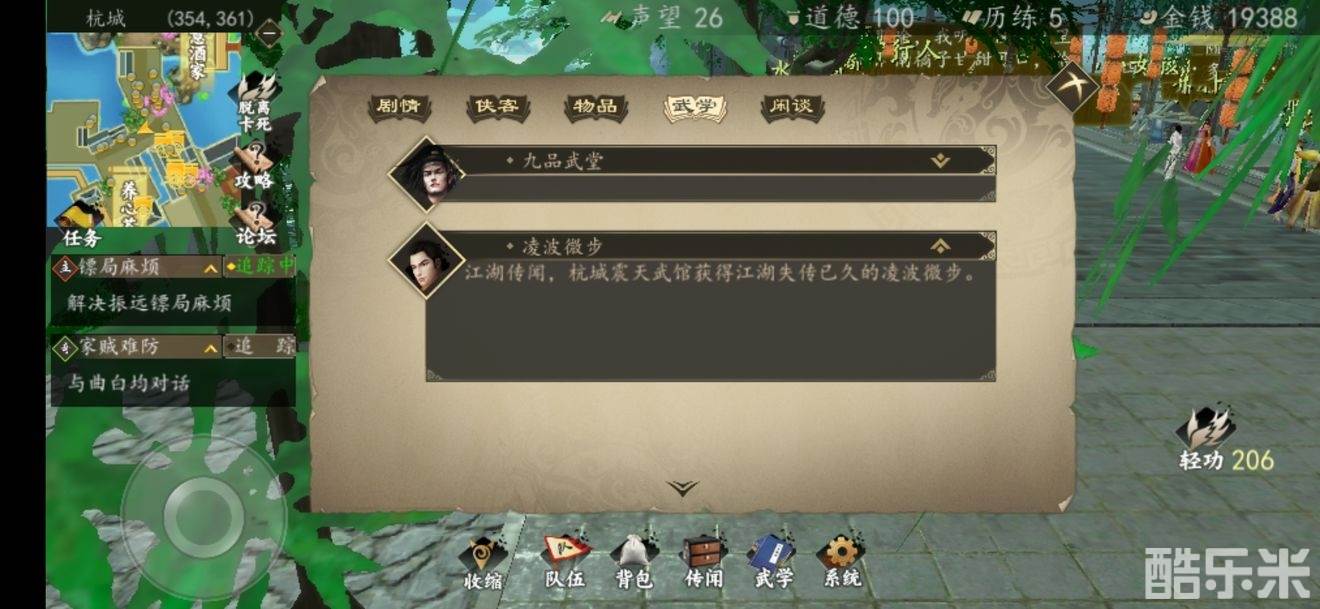 1、传闻武馆里有凌波微步,实际找不到,因为改名了叫孤鸿入海;