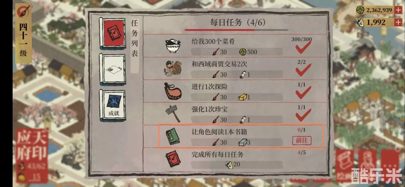 江南百景图满级了怎么阅读书籍?江南百景图的每日任务之一是,让角色阅读1本书籍,有的玩家角色全满级就完成不了这个任务,那么江南百景图满级了怎么阅读书籍?下面小编给大家带来了江南百景图人物满级后读书方法介绍,不知道的一起看看吧。