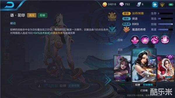 貂蝉的被动技能可以使貂蝉的技能命中敌人之后在其身上留下标记,当标记达到四层之后将会自动引爆,对周围的敌人造成真实伤害以及减速效果,同时还会为貂蝉回复一定量的生命值。