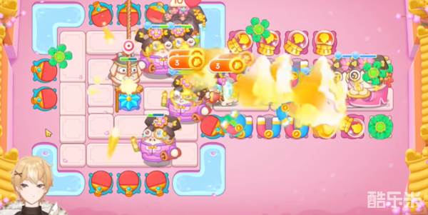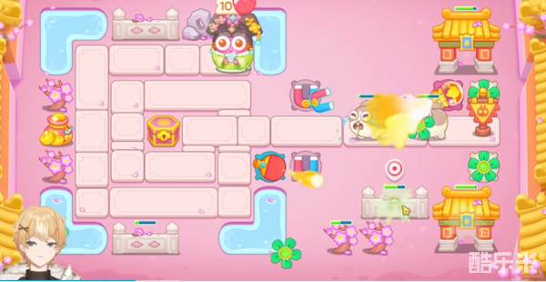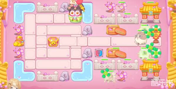 3、继续沿着周围放置炮台同时集中清理地图中间的障碍,击破可以获得一个冰花。