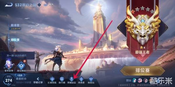 2、然后我们在游戏的左下角找到我们的荣耀记录按钮点击它展开;