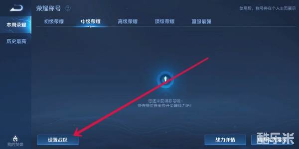 4、跟着我就在荣耀称号的这个页面点击左下角的设置战区键;