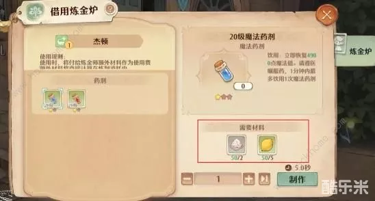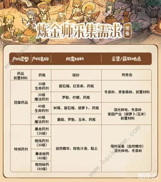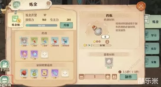 前期等级较低时,可以在空闲时候先攒着材料,等到配方解锁后就可以快速炼金“直升”满星啦!其中部分素材需求量较高,推荐勇者先行囤积,例如自然精华、硅砂、甜石榴、红浆果、罗勒、柠檬、棕色汁液等。