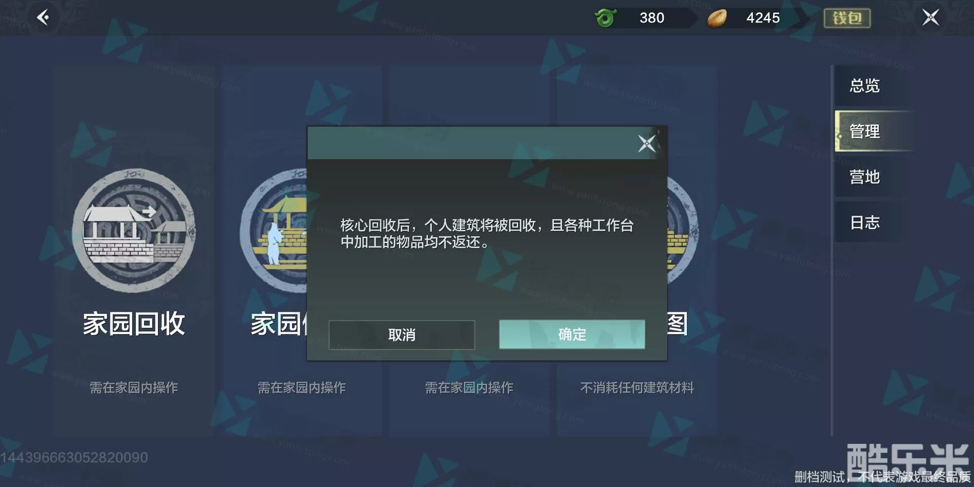 3、最后确定核心回收即可,可以换一个山清水秀的地方重新放置息壤建房子。
