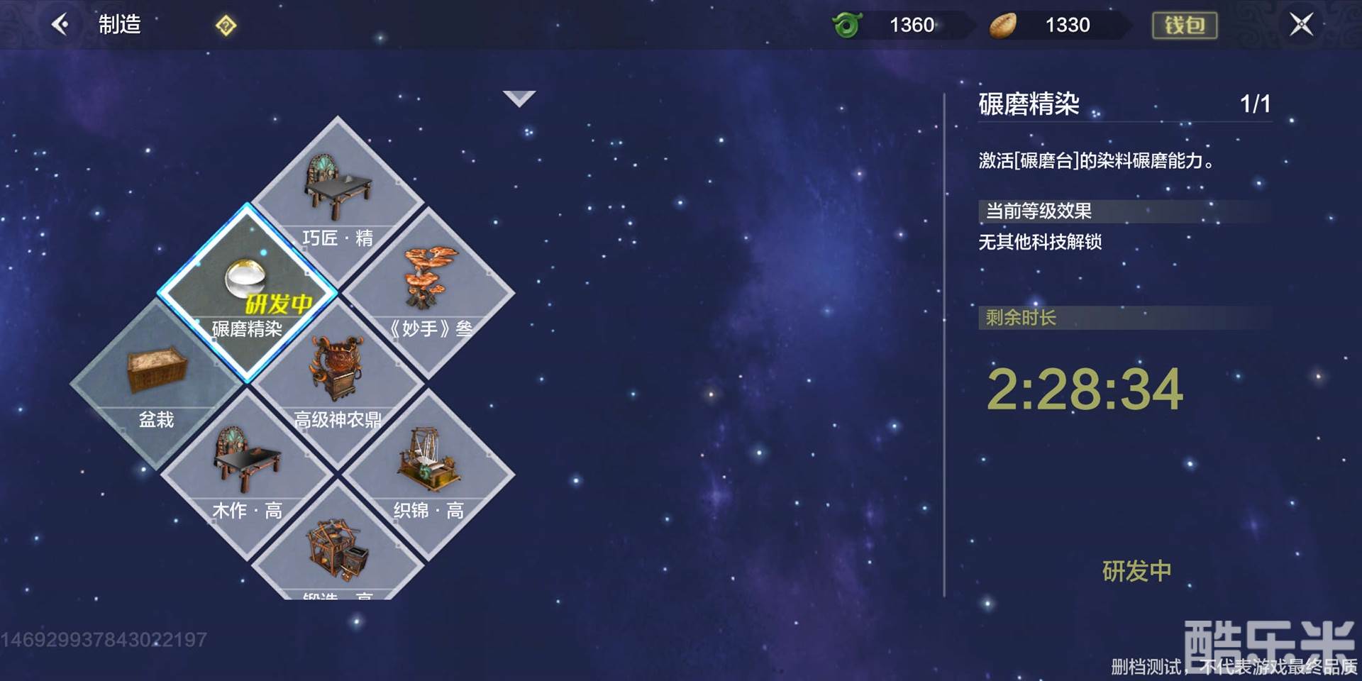 一定要升级科技,研磨解锁到染料才能得,否则,即使得到古椰果,研磨器上也不会出现。