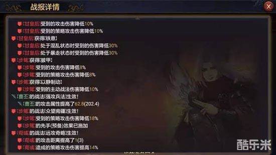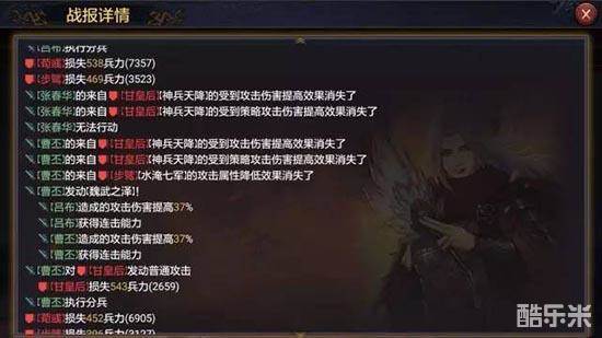 实战中这个技能对群吕布的提升也非常犀利,图中的群吕布战法选用为雄兵破敌+愈战愈勇,可以说是一个以战法伤害为主的配置,但在曹丕的加成下,群吕布的普攻杀伤往往能够超越战法杀伤,或者达到平齐。这是很惊人的效果。而曹丕的战法伤害不谈,普攻伤害往往也能打出一个副输出位的效果。这是如何达到的呢?我们来看详细的解析。