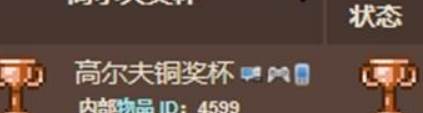 在泰拉瑞亚里,玩家可以游玩高尔夫小游戏,在玩家达到一定的高尔夫的分数后,就可以在高尔夫球手处使用一金币购买奖杯,游戏里的奖杯是不能染色的。