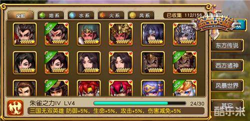 游戏中有四大阵营,当我们收集某个阵营的英雄达到一个数量,比如我在三国阵营,收集一定数量的英雄会触发一个叫做朱雀之力的阵营buff,收集的英雄越多,buff也就越大,比如4级的朱雀之力buff便能为三国阵营的玩家提供5%的防御、5%的生命、5%的攻击加成。