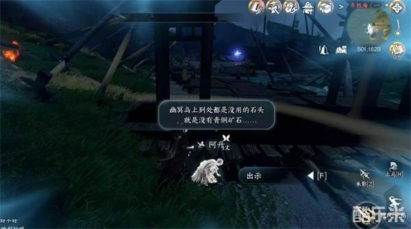 1、等到晚上亥时后玩家将需要前往东极海(501,1629)找到阿升提交“青铜矿石”,之后与他进行对话。