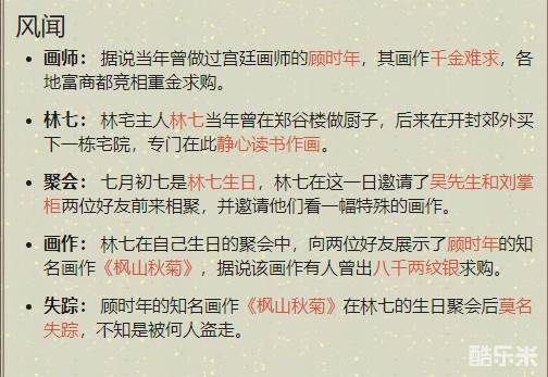 天涯明月刀手游名画寻踪案怎么通关?天涯明月刀手游名画寻踪案讲的是:林宅里丢失了一幅珍贵的名画,不知何人所为,名画寻踪案证据是什么?下面小编给大家带来天涯明月刀手游区名画寻踪案证据和最后凶手介绍,一起看看吧。