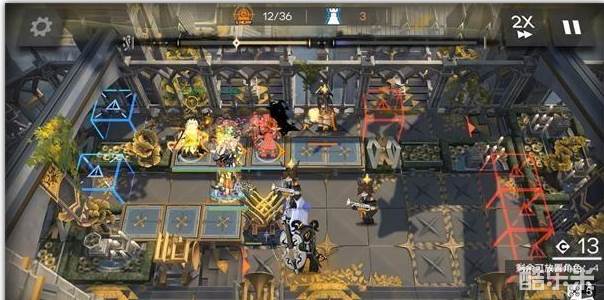 2.依次部署煌朝右,医疗朝右,小羊朝右,等小羊打死上面2个怪后粉毛朝右。注意粉毛和医疗练度要高,否则多带医疗,因为粉毛打对面盾的反伤触发次数很快,会把自己反伤到残血。