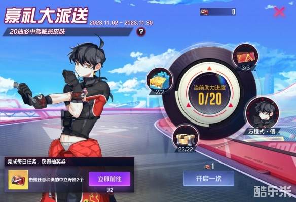 驾驶员信限时特惠,完成每日随机任务获得抽奖券,至多20抽可得驾驶员信A级外观“方程式”!