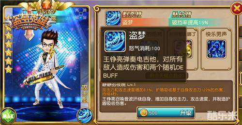 王铮亮弹奏电吉他,对所有敌人造成伤害和随机两个DEBUFF。