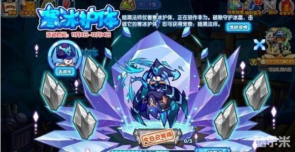 1.洛克王国寒冰护体活动暗黑法师平时周围会有6块冰晶护体,小洛克们则根据每日需要击破的数量,将其清理掉,发起战斗。