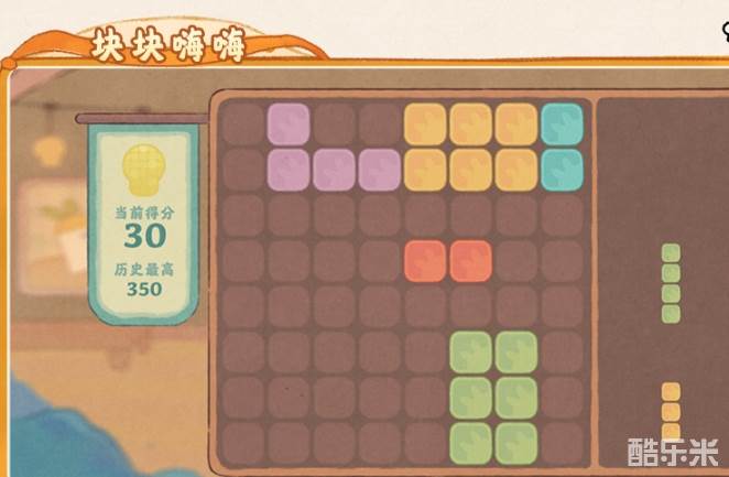 游戏开始后,右侧会出现3个方块,3个方块都放置到左侧棋盘后会出现新的方块,当右侧剩下的方块都无法放置则游戏结束。同一行或同一列填满方块就会触发消除,单次消除行列数越多,额外分数越高哦~