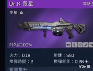 该武器的全名应该是叫做dr.k毁星,除了能拥有两者不同的战斗形态以外,它的射击速度也是非常快的,在高密度的射击下,其对于玩家的耗能方面消耗却很小,这是它的主打优势,也是很多朋友关注它的原因之一。