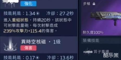 它的一技能粒子重构,在玩家进入到rpg模式中以后,能够发射能量炮,并且能够为大家重置时空重核的冷却,关键是在清怪方面的表现非常不错,毕竟这是一个范围的伤害,能够持续高达20秒的时间。