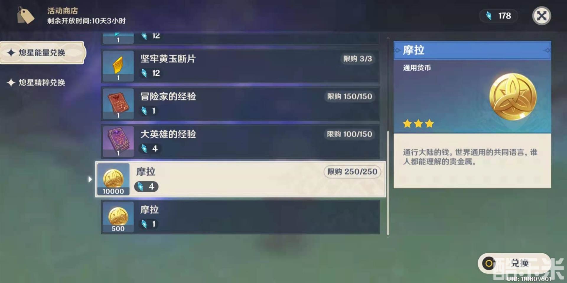 2、其次推荐摩拉,4个碎片10000摩拉,真实划算;