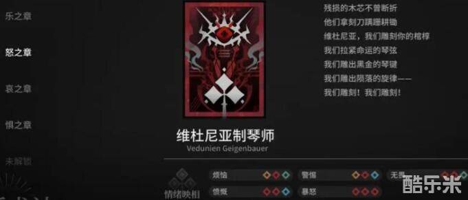 乐音符为黄色、怒音符为红色、哀音符为蓝色、惧音符为绿色