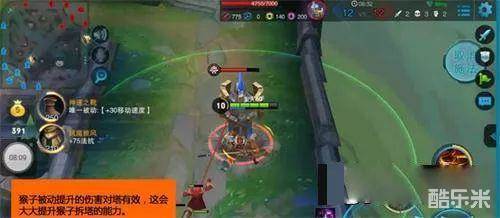 猴子的被动提升的伤害,可以用来打塔,大大加强了推塔的效率。