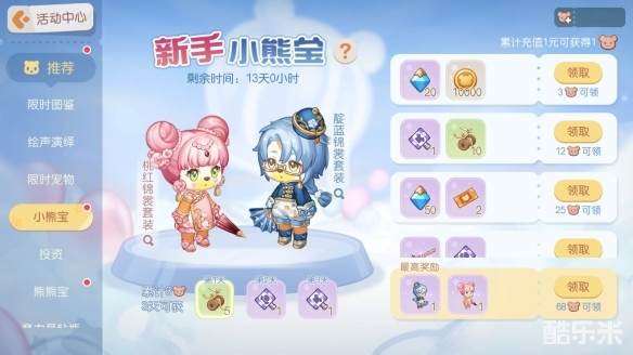 熊熊宝限时回馈活动上新,在活动期间,每往游戏内储蓄1元,即可获得1点小熊积分。当小熊积分达到对应的奖励积分档位时,可解锁对应的进度奖励,丰厚的奖励包括「高音震震杯」互动家具、「天才指挥家」称号、「艾拉头像框」、「彩蝶私语」装扮等,快来参与吧!