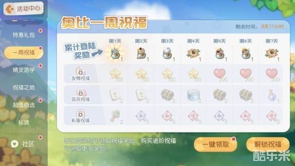 活动期间内,奥比们通过每日登录即可领取7日祝福奖励。购买进阶祝福(本次含:染色祝福/订单祝福/彩蛋祝福),还可获得对应祝福的更多奖励哟!