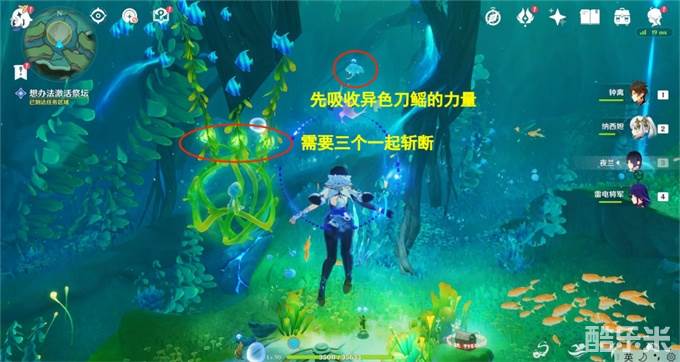 3、然后来到水下找到异色刀鳐吸收能力斩断水草。