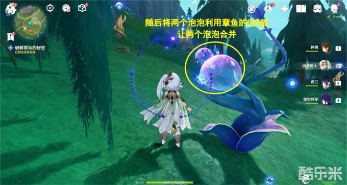 4、集火柱子上的章鱼获得力量,将泡泡合并。