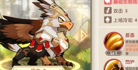 皇家狮鹫的主动技能有反击和防护两个,其中反击的效果是可以在皇家狮鹫受到攻击的时候,能够对和自己对位的目标造成一次反击伤害,伤害的数值和对方的血量上限有关,并且还有固定伤害,所以无论是对方的肉盾或是输出,都会在反击中受到不少的伤害。防护技能的效果是在每个回合内,都会为我方一个目标添加物理抗性提升的状态,这也技能虽然有些片面,但是提升的效果很明显,能够极大地降低受到的物理伤害。被动技能战争专注,使得皇家狮鹫在受到来自队友的增益状态的时候,可以提升状态的效果,非常适合于辅助型的卡牌搭配。
