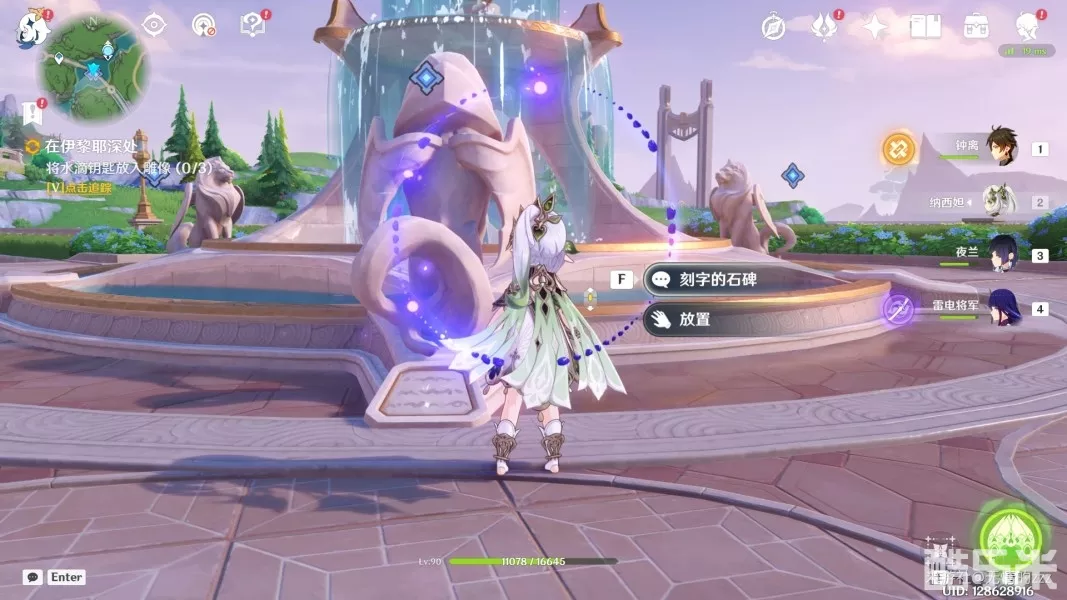 1、首先跟随任务的指引回到喷泉处,放置我们任务中得到的三个钥匙,打开中心的神秘区域