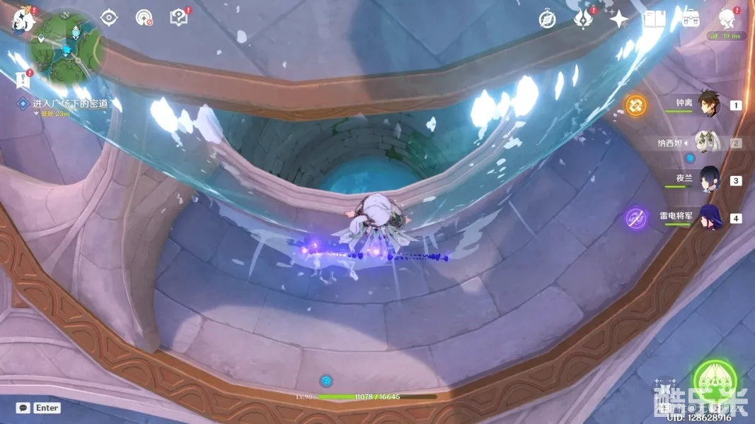 2、随后我们顺着喷泉中心显露的位置往下跳。