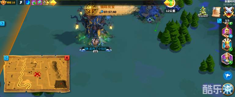2、打开游戏界面,可以看到右下角有个小地图,图上有红色的叉子,那个就是宝藏地点;