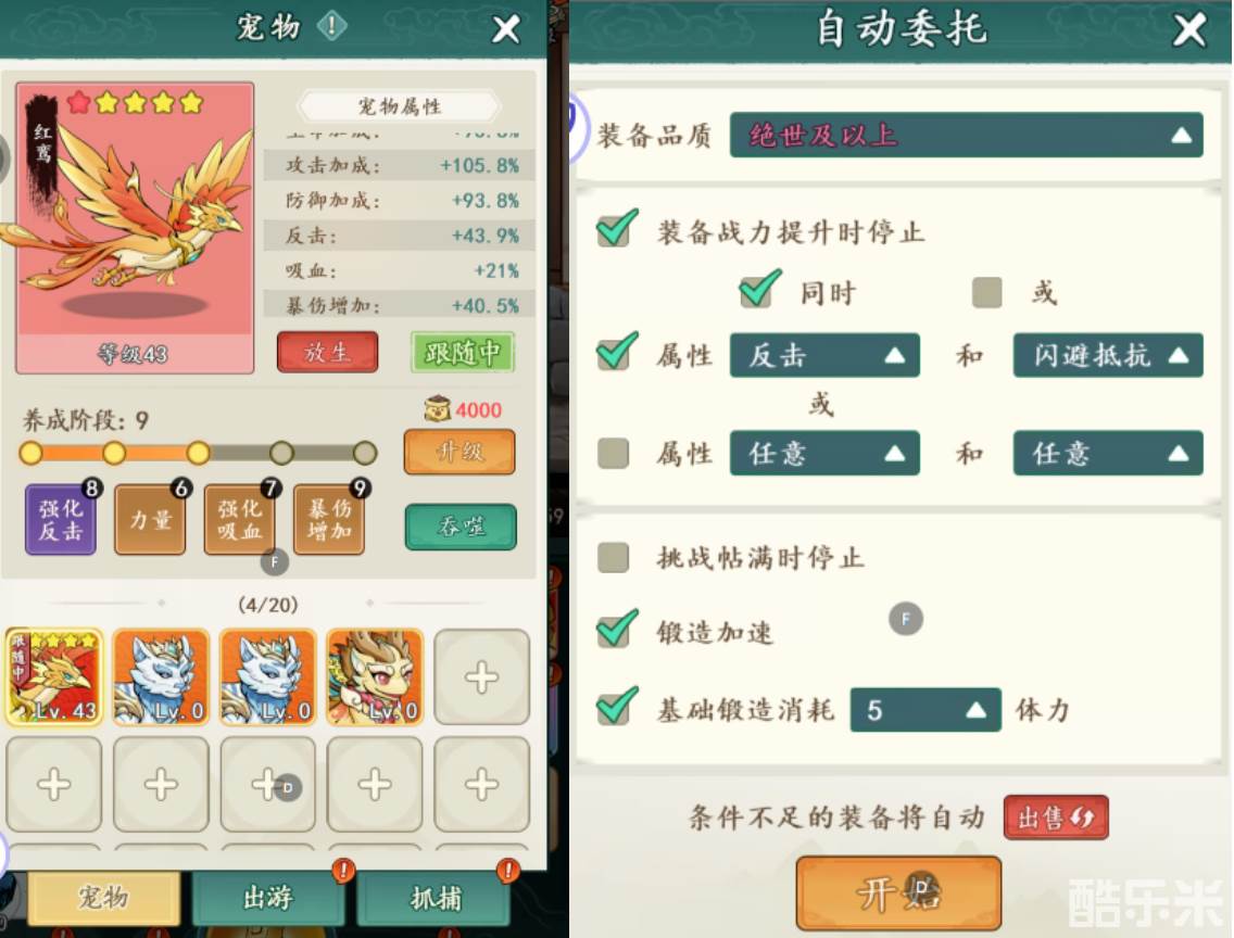 宠物这里可以1万元宝必刷出红色宠物,前期千万不要喂宠物升级! ! 一定要刷出了红色宠物起码2个橙色技能再去升级,切记切记,不然你换宠物就只返还60%的宠物狗粮,虧别人50级的宠物而你换完之后只有30多级,有条件的直接-直抓1万元宝保底一个红色升星,老板可以直接拉20星起步。