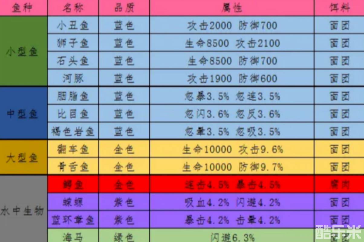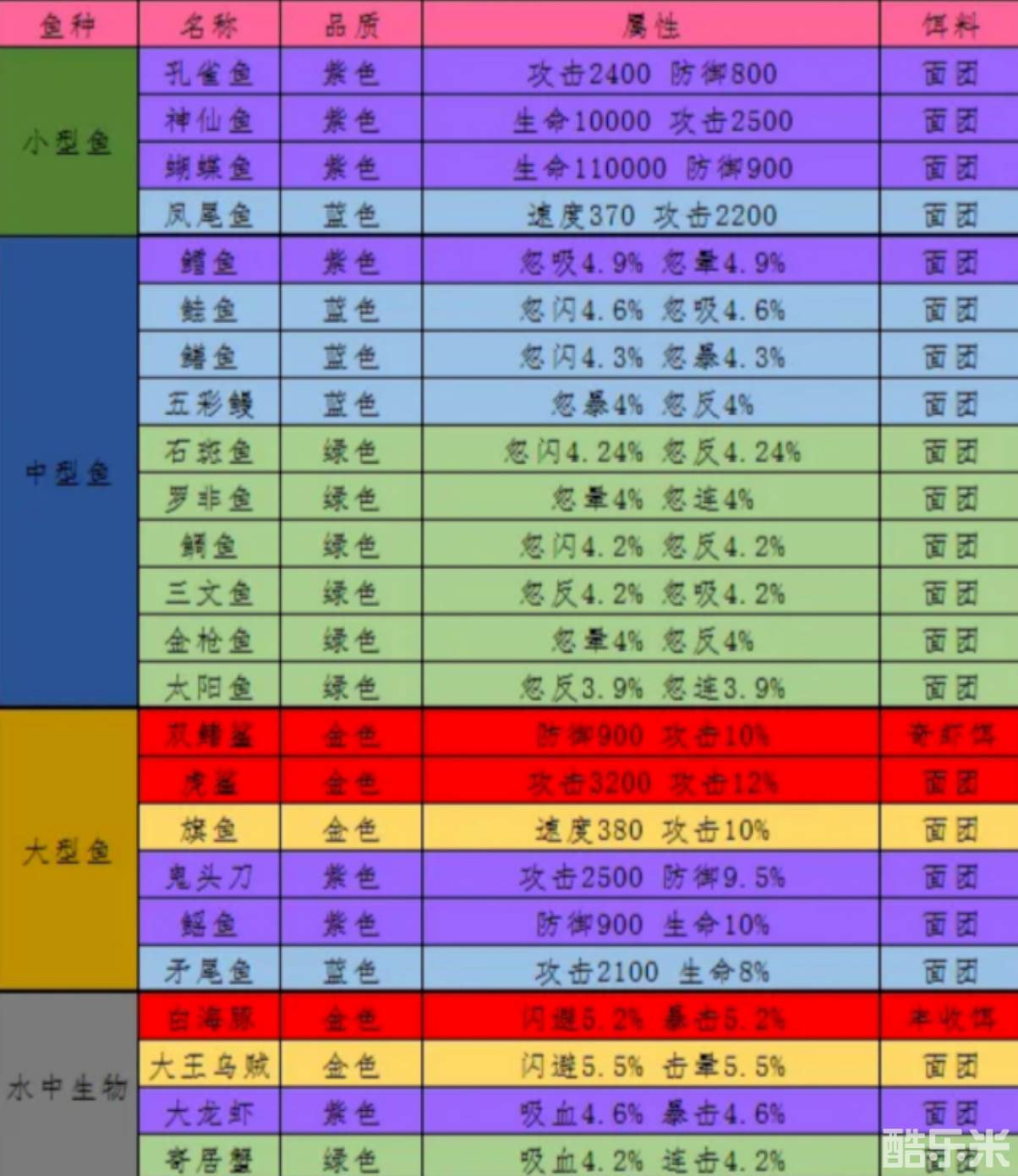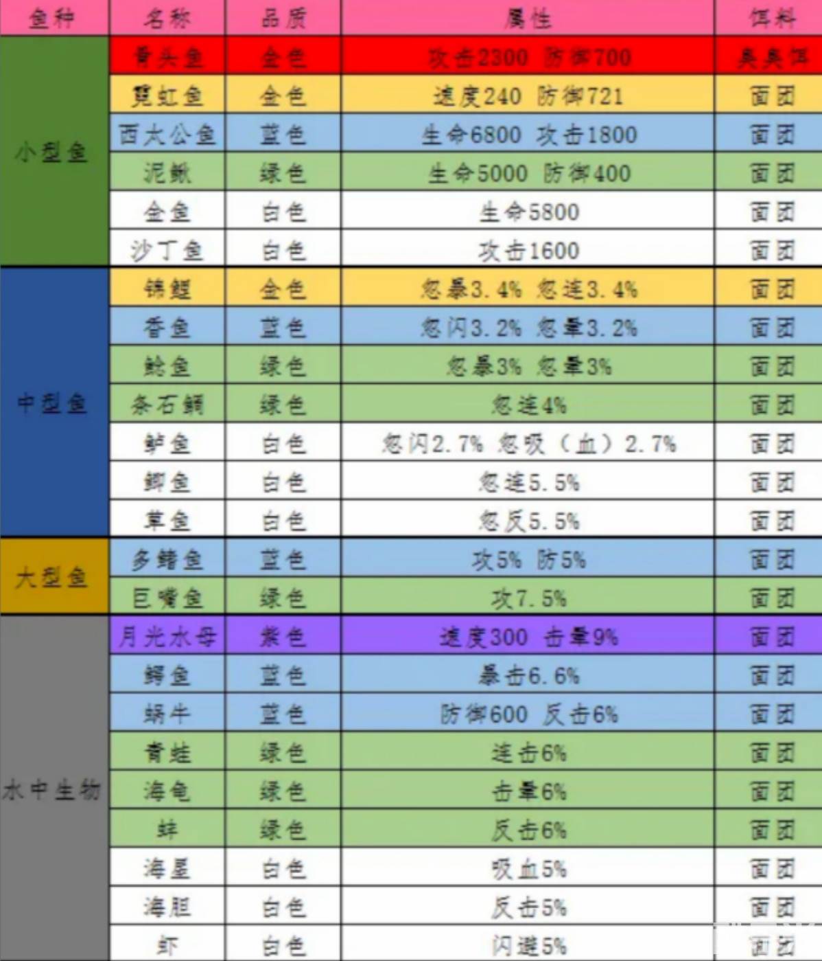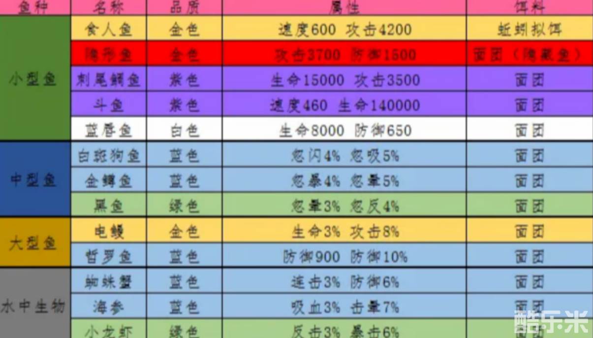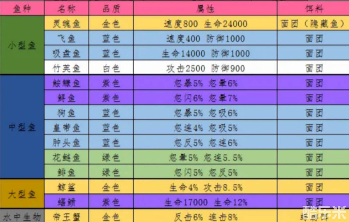 下面上钓鱼图1到图5全部属性,还有特殊鱼所用鱼饵。