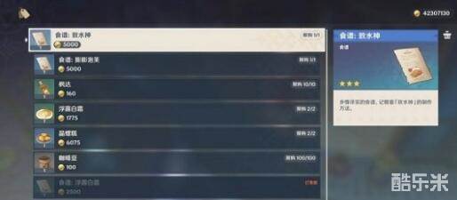 原神致水神食谱如何获得?原神游戏让你能够选择的闯关模式都是很简单的,不同的地图中能够获取的奖励也是很多的,致水神食谱的内容都是很丰富的,材料获取也很简单,这里小编准备了具体的攻略,感兴趣的玩家可以来酷乐米网关注一下哦!