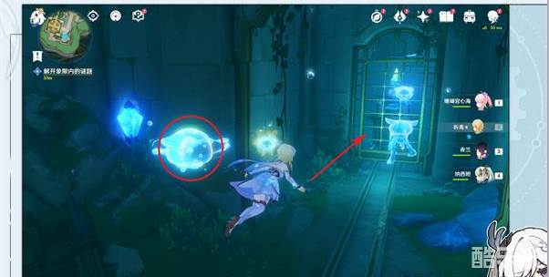 10.之后吸收水母的力量,将水母发射到晶体旁,再来到铁门前。
