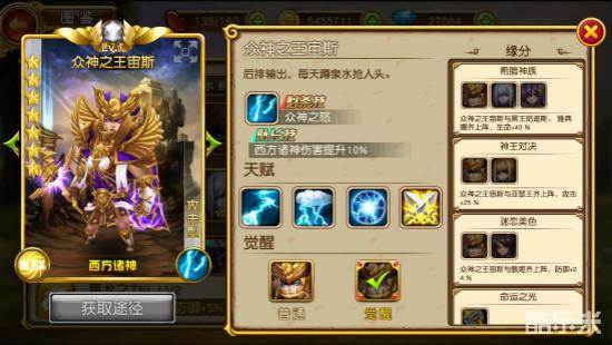 从人物缘分看来,希腊神族是个生命大缘分,提升宙斯、哈迪斯、雅典娜三人的生命值,有了这个缘分,宙斯的生存能力得到了一定保障。神王对决缘分加宙斯攻击,对主打攻击的宙斯有着不错的增益。紫色缘分迷恋美色则提升宙斯的防御能力,可以视情况把甄姬放在加油位提供缘分加成。