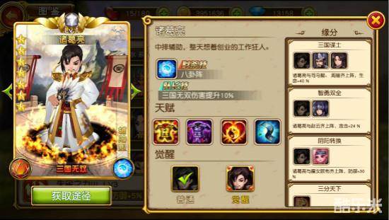 从人物缘分看来,三国谋士是个生命大缘分,提升司马懿、诸葛亮、周瑜三人的生命值,这三个人都是后排的英雄,有了这个缘分,后排的生存能力得到了极大的保障。智勇双全缘分加赵云、诸葛亮攻击,可以补足两人的攻击能力。阴阳转换缘分加成提升诸葛亮的防御能力,照例是把魔女欧布放在加油位为诸葛亮提供缘分加成。