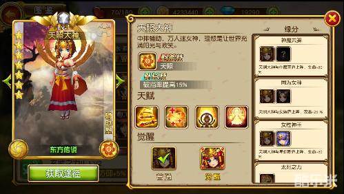 作为日本神话中的至高神,自带主角光环也是情有可原的事情。从技能说来,天照大神的绿色技能对扇形区域敌人造成伤害,有概率致盲目标2秒;蓝色技能全体回血;紫色技能降低自身所受伤害,是个保命技能;大招致盲范围内敌人,并降低30%的护甲,友方增加闪避格挡并缓慢回血。