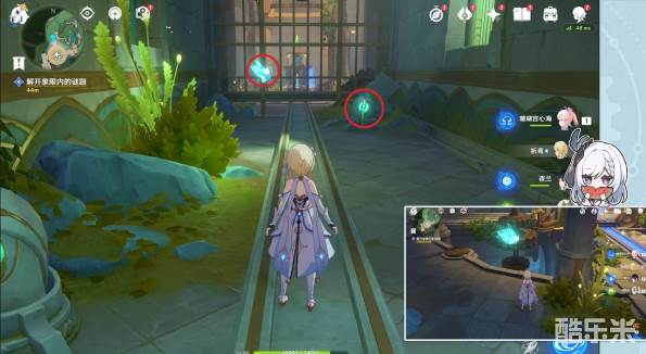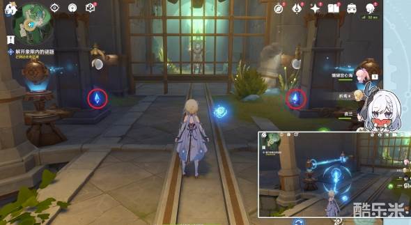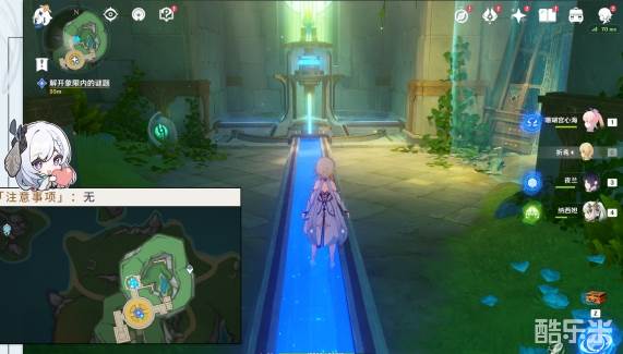 3,再来到南边的升降柱,对准右边的晶体发射光束,将它升到2格(出现较长的光线即可)