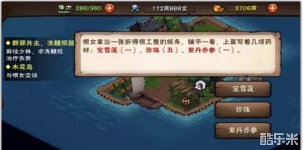 1、玩家需要在归云岛位置触发剧情在木花岛找到NPC恨女完成药材收集。