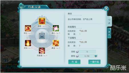 我佛慈悲:为单体目标回复较多气血,对带有九品莲台状态的单位释放时,会恢复额外气血
